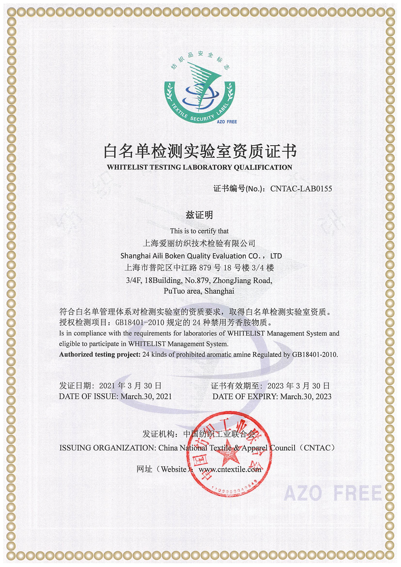 白名單證書 (證書編號(NO.):CNTAC-LAB0155)